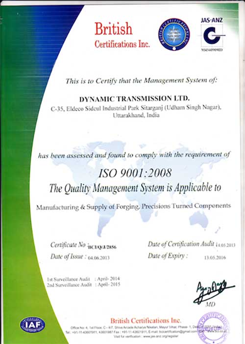 With a turnover of over 120 crores, Newdynamic has strived to achieve high quality standards through a dedicated workforce with total commitment to the customer’s requirements. The effort has resulted in quality certifications of ISO/TS 16949, ISO 9001, ISO 14001. Also to the credit is a D&B Number and evaluation which indicates the financial strength of Newdynamic.